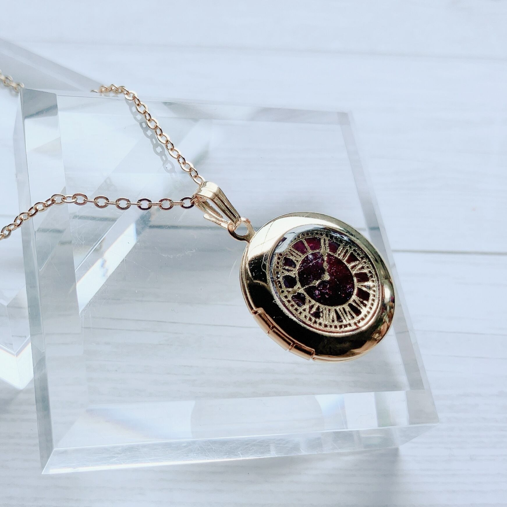 時計デザインのロケットペンダントです。ペンダントの中に大切な人や家族、ペット等の写真等を入れて身に付けられます。